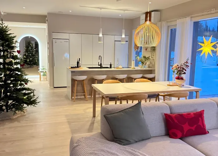 A Finnish Design Villa With Outdoor Jacuzzi Rovaniemi está localizada a 17 minutos a pé de Forestry Museum of Lapland e oferece aos hóspedes a oportunidade de relaxar com sauna. A propriedade inclui parque de estacionamento privado gratuito e terraço com vista para o jardim.